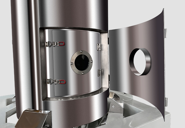 方便后續的清理,清潔門配有玻璃窗口,可隨時觀察料筒內部情況,門與料筒緊密貼合。